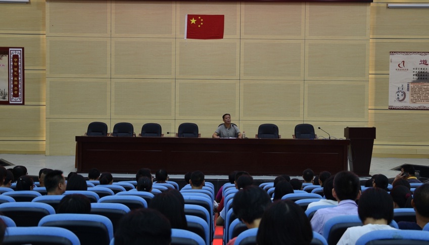 2018年8月29日,在全体教师大会上,邝卫航校长传达了“扫黑除恶”相关文件精神。